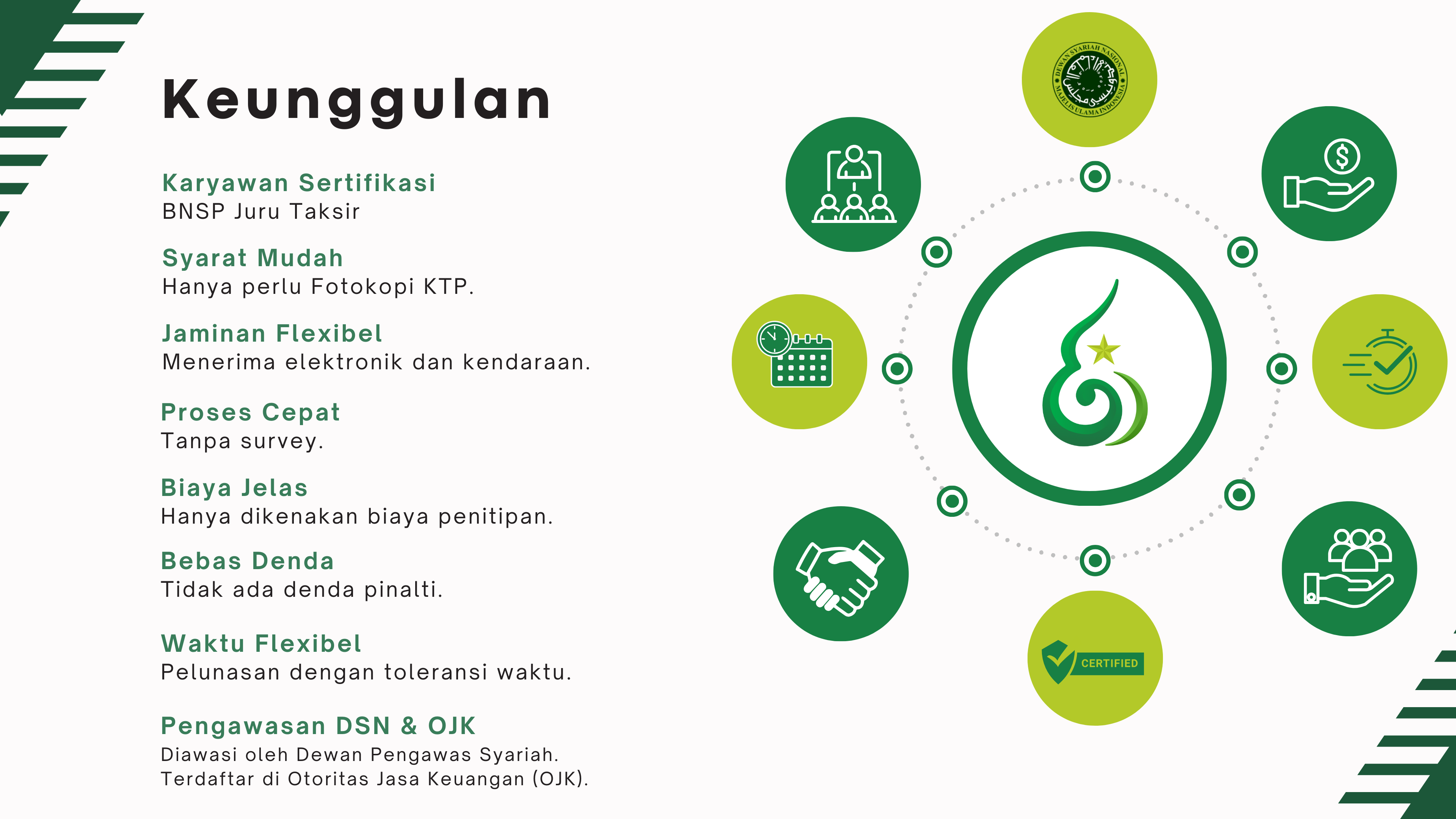 Pergadaian Syariah beroperasi sepenuhnya sesuai dengan prinsip-prinsip syariah Islam. Kami memastikan bahwa semua transaksi dan layanan kami memenuhi standar kehalalan dan keadilan, memberikan kepastian bahwa setiap transaksi dilakukan dalam kerangka hukum dan etika syariah.